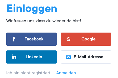 Schritt 2: Gib deine E-Mail-Adresse ein oder melde dich mit einem Social Media Account an. Siehe Screenshot unten.